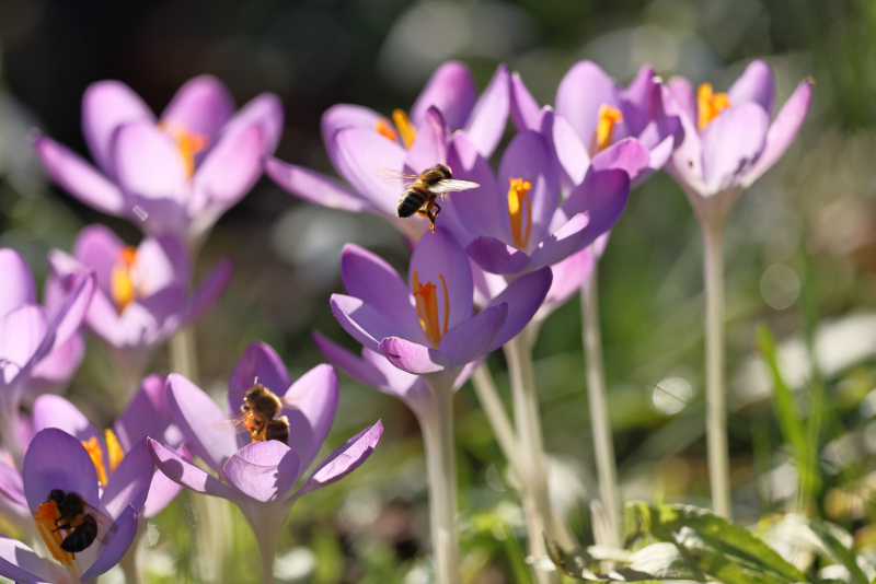 Weblog Crocussen en bijen DoorAd van Roosendaal 2 maart 2026 Vele honingbijen kwamen op de boerencrocussen af.