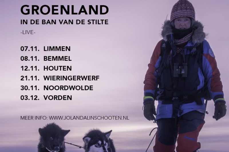 Op woensdag 3 december 2025 20.00 u geeft Jolanda Linschooten een avondvullende lezing GROENLAND ‘In de ban van de stilte’, over haar avonturen op Groenland. De lezing is gevuld met speakersupport, video en foto’s. Komt allen, entree 10 Euro per persoon. Kulturhuus Vorden.